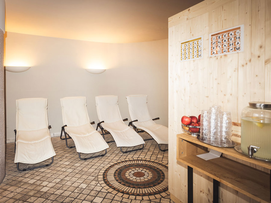 Unser Wellnessbereich sowie die Gartenlounge mit bequemen Liegestühlen laden Sie ein, die Seele baumeln zu lassen und neue Energie zu tanken.