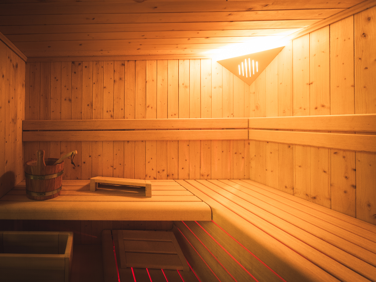 Unsere traditionelle finnische Holzsauna (90 °C – trockene Umgebung)